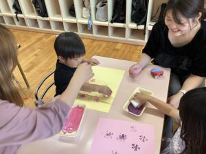 まずはスポンジを使って、コスモスのスタンプ🌸