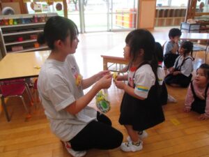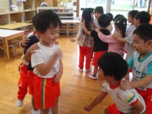 ピアノが止まったら、近くの友だちとじゃんけん開始🖐✌