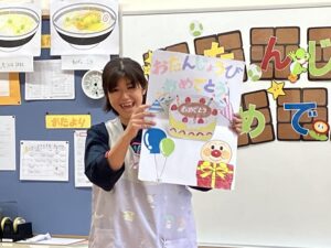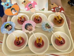 給食の先生からは『うさぎのケーキ』でお祝い😋