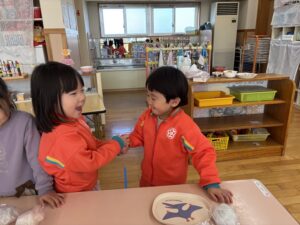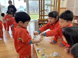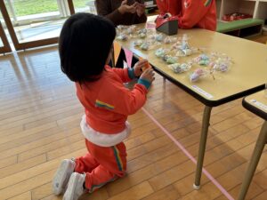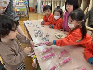 お菓子を並べたり、お店の名前を貼ったりしました。
