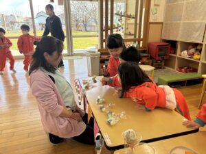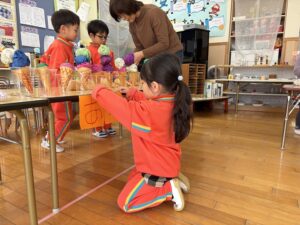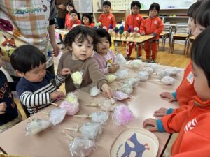 お菓子を並べたり、お店の名前を貼ったりしました。