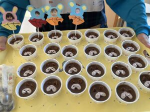 給食の先生からは『タヌキのケーキ🎂』でお祝い!