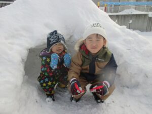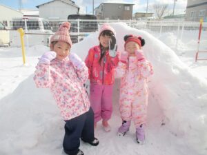 園庭にはかまくらや雪山の滑り台がありました!!
