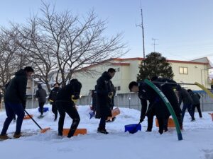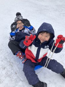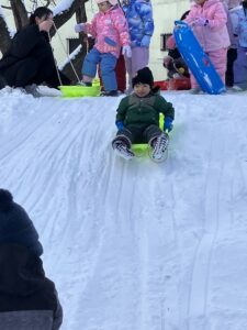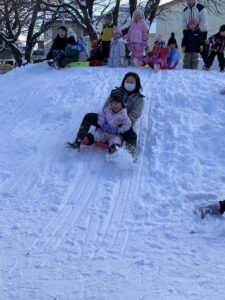 幼稚園に雪のすべり台が登場!!!😲😲😲