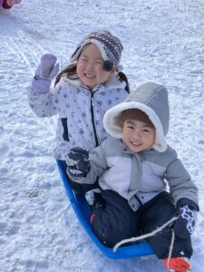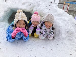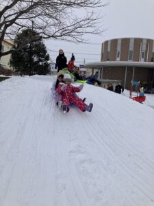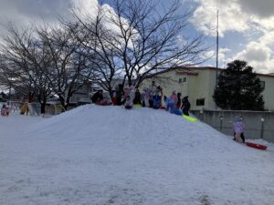 幼稚園に雪のすべり台が登場!!!😲😲😲