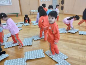 卵パックを使って遊びました。