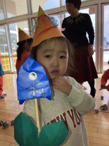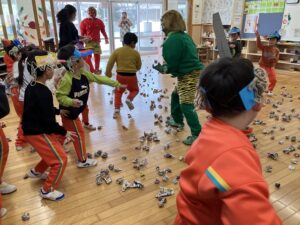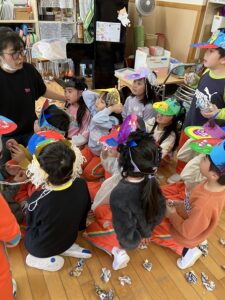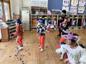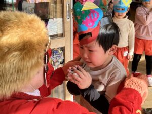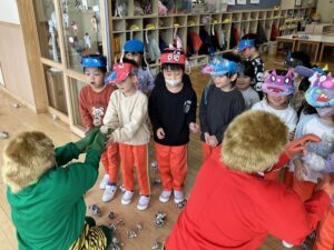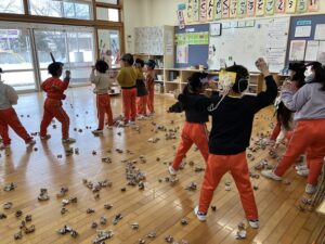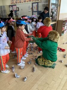 幼稚園では豆まきが行われました。