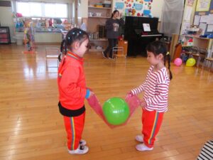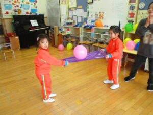 風船を使ったゲームに挑戦しました。