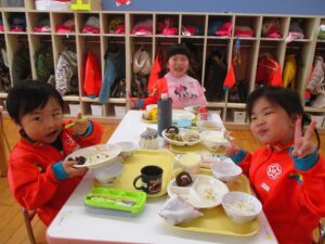 朝の自主活動や給食など