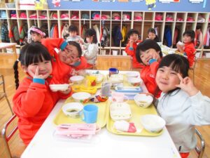 朝の自主活動や給食など