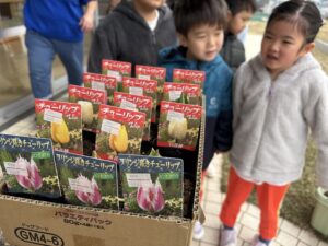 「チューリップの球根を植えますよ~」
