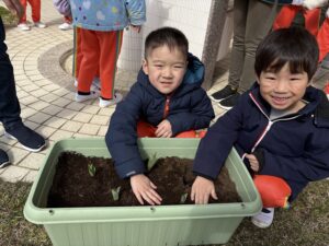 チューリップの球根植えは、年長さんが毎年担当し