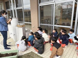 「チューリップの球根を植えますよ~」