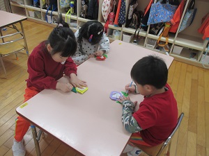 好きな色の折り紙を選んで、さぁスタート!