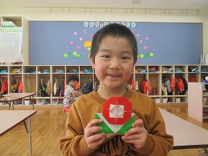 今度は、いろいろなお花の折り紙にも